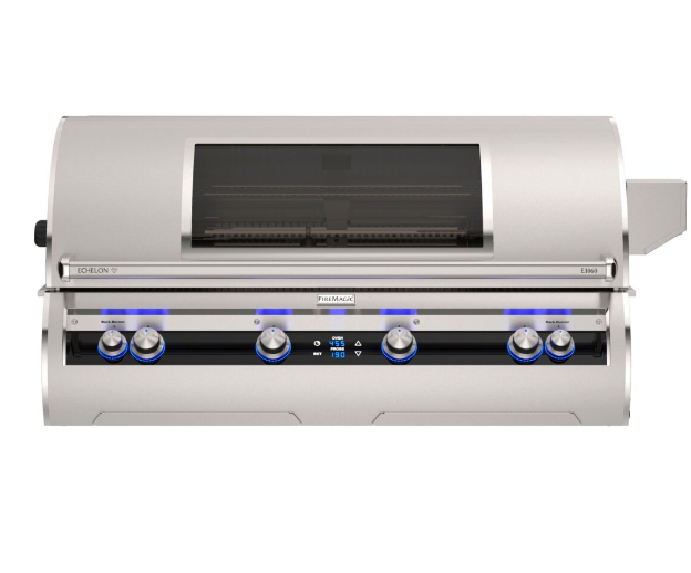 When only the best will do, our flagship Fire Magic® Echelon Diamond combines the ultimate in performance, beauty and innovation. With sleek lines highlighted by a modern black glass control panel with a digital touchscreen operation and bluetooth remote capability. Cast stainless steel burners power an innovative heat distribution system topped with patented Diamond Sear cooking grids to truly elevate the outdoor cooking experience. The Echelon Diamond defines luxury in grilling.