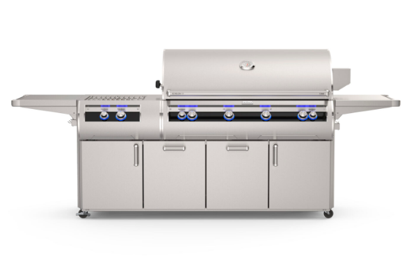 When only the best will do, our flagship Fire Magic® Echelon Diamond combines the ultimate in performance, beauty and innovation. With sleek lines highlighted by a modern black glass control panel, choose analog or digital touchscreen operation with blue tooth remote capability. Cast stainless steel burners power an innovative heat distribution system topped with patented Diamond Sear cooking grids to truly elevate the outdoor cooking experience. The Echelon Diamond defines luxury in grilling